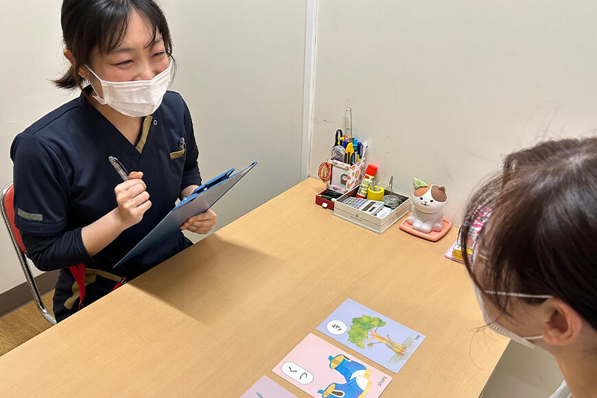 言語聴覚療法とは、様々な原因により言葉や聴覚に障害を負われた方に対して、機能改善や生活の質の向上を支援するリハビリテーションの分野です。専門的な評価を実施し、個々に合った訓練や指導を行うことで、日常でのコミュニケーションが少しでも円滑に行うことを目指します。また、飲み込みの障害がある方に対しては、必要に応じて耳鼻咽喉科や栄養科などの他科と連携し、飲み込みの機能改善や食事形態の適切な選択を行うことで、安全に口から食べられることを目指します。
