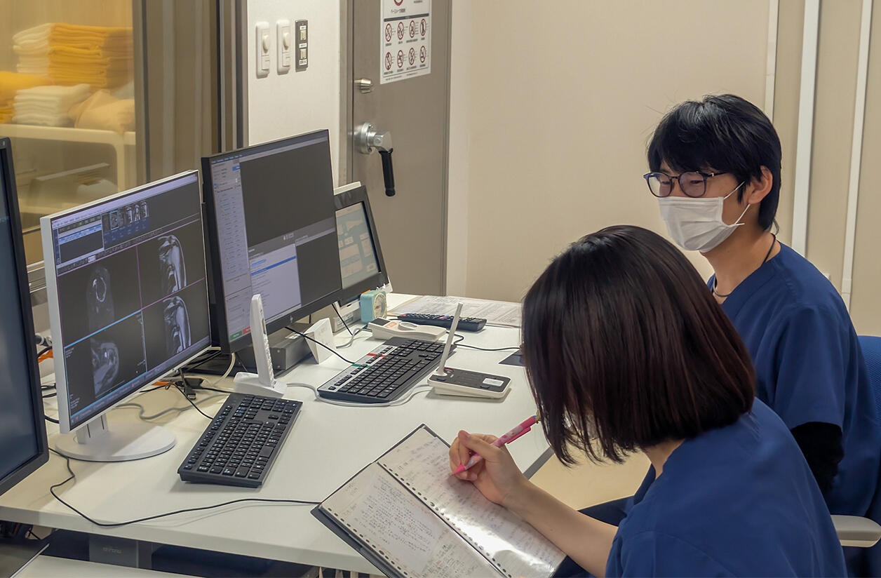 私は、入職してからできるだけ多くのモダリティに携わりたいと思っていたため、モダリティを絞らずに多種多様な検査に携わることができる当院での就職を選びました。